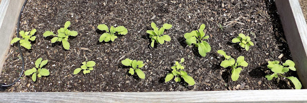 We should start eating fresh radishes in a week or two. These are super crisp and juicy, but not too hot, so we love them.